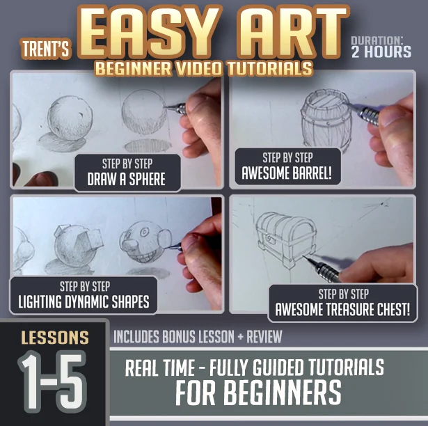 Would you like to learn how to draw? It's not as difficult as you might think! These VIDEO GUIDED lessons are designed for the beginner with little or no drawing experience to learn the basics, and start creating AMAZING artwork with nothing but pencil and paper after only one day!