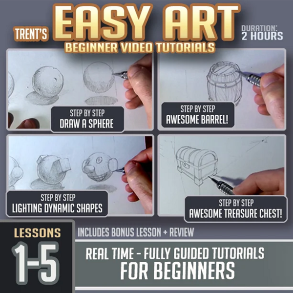 All of the Easy Art Lessons from lesson 1 to 40. These are complete and thorough. Sometimes I update the content to keep the production quality current.
