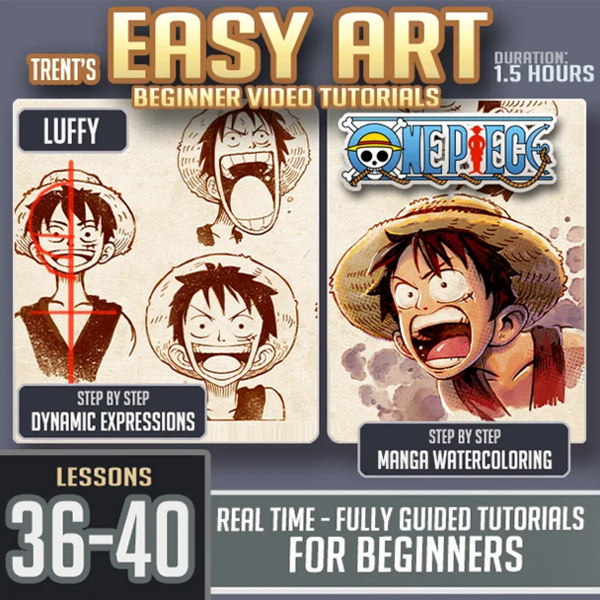Lessons 36- 40 - Drawing Luffy from ONE PIECE Manga and Anime