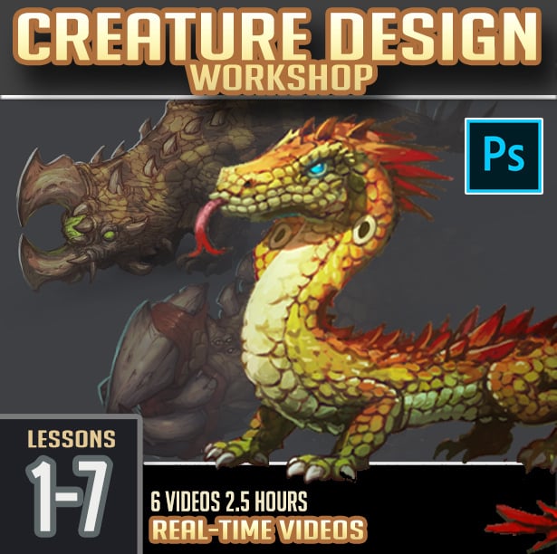 You will learn how we create creatures for clients as well as many photoshop tricks to develop your skills. Everyone knows that I don't like to just give you a single lesson. These tutorials will show you HOW TO LEARN on your own, well beyond the 2.5 hour workshop.